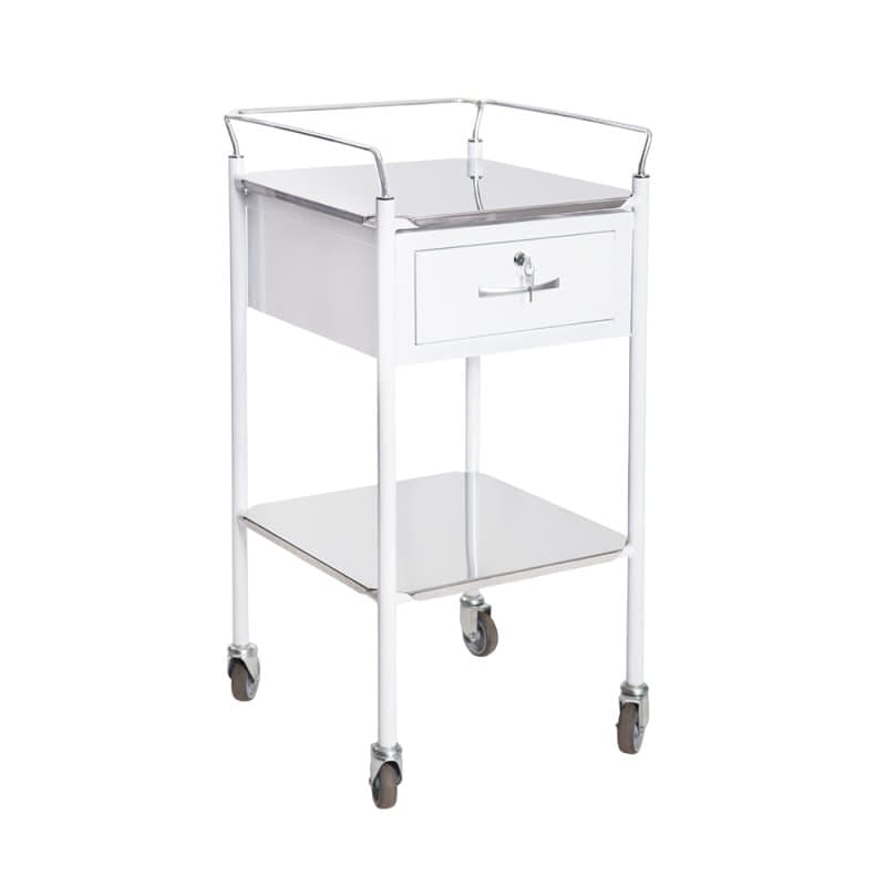 Product Code: TW-OE55 Specifications: – Epoxy Coated Mild Steel – Powder Coated – 1 Pull-Out Lockable Drawer – Stainless Steel Shelf – 10mm Chrome-Plated Guard Rail – 4x75mm Swivel Castors Back To Catalogue